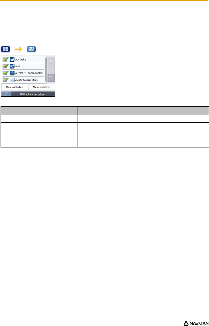 Sonderziele (POIs) werden in Kategorien zusammengefasst. Sie können angeben, ob Sie die Symbole aller POI-