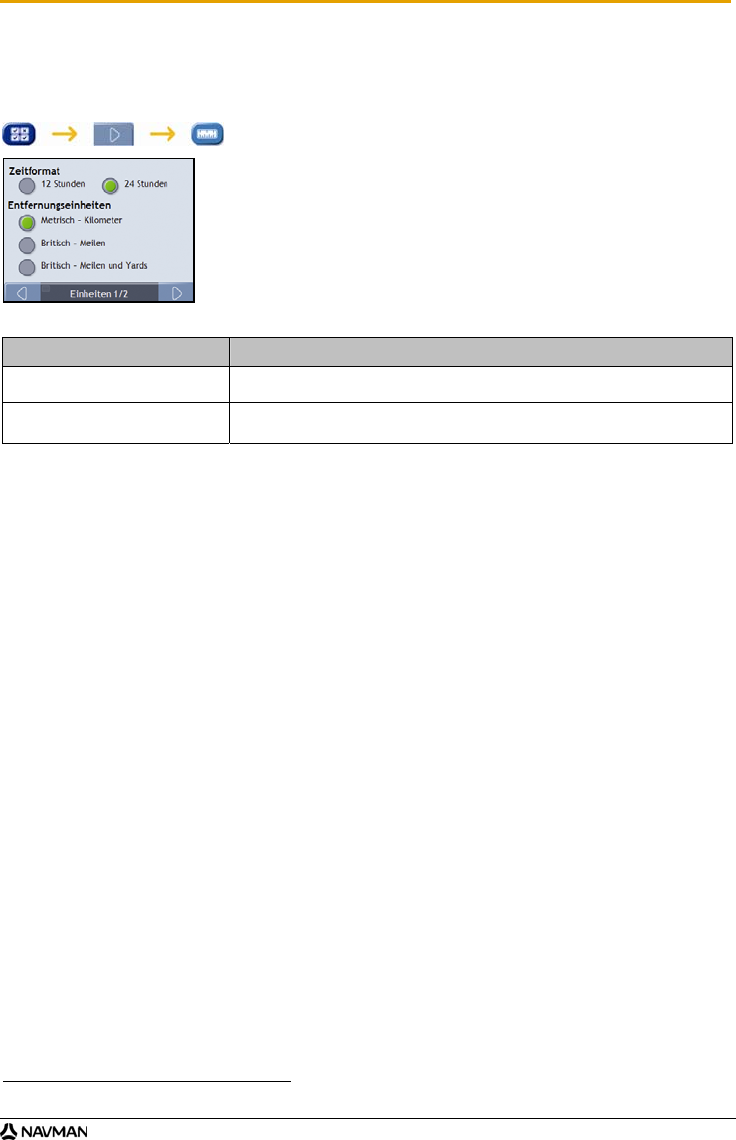 Sie können die von Ihrem Navman verwendeten Einheiten ändern, indem Sie die Einheiteneinstellungen anpassen.