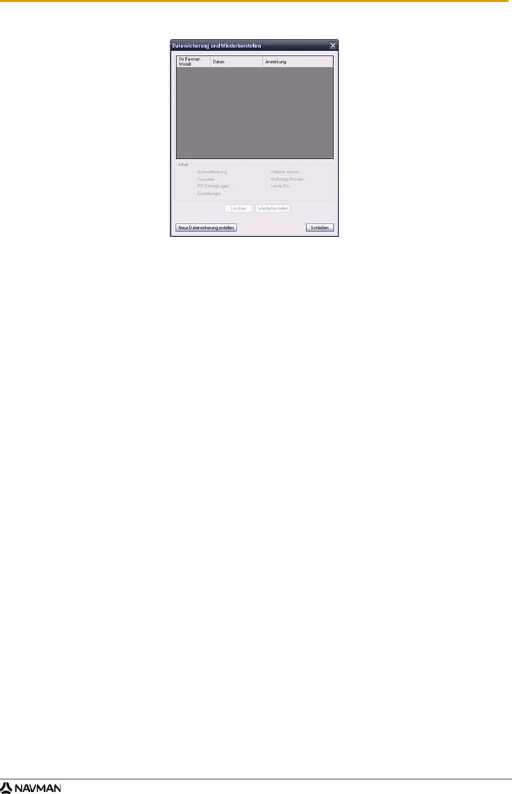 Sie können die folgenden Informationen sichern, um sie später im Navman wiederherzustellen: