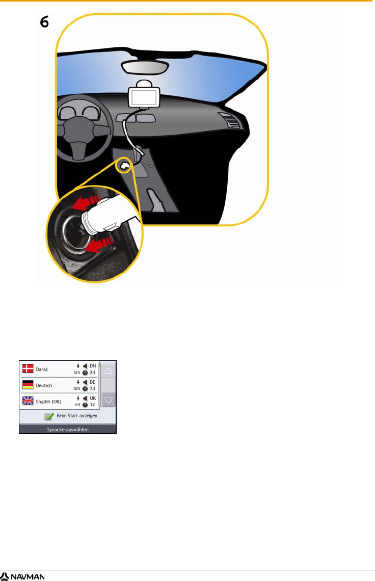 Ihr Navman wird eingeschaltet und zeigt den Bildschirm Sprache an.
