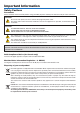 Important Information WARNING TO CALIFORNIA RESIDENTS: Handling the cables supplied with this product will expose you to lead, a chemical known to the State of California to cause birth defects or other reproductive harm. WASH HANDS AFTER HANDLING. RF Interference (for USA only) WARNING The Federal Communications Commission does not allow any modifications or changes to the unit EXCEPT those specified by NEC Display Solutions of America, Inc. in this manual.