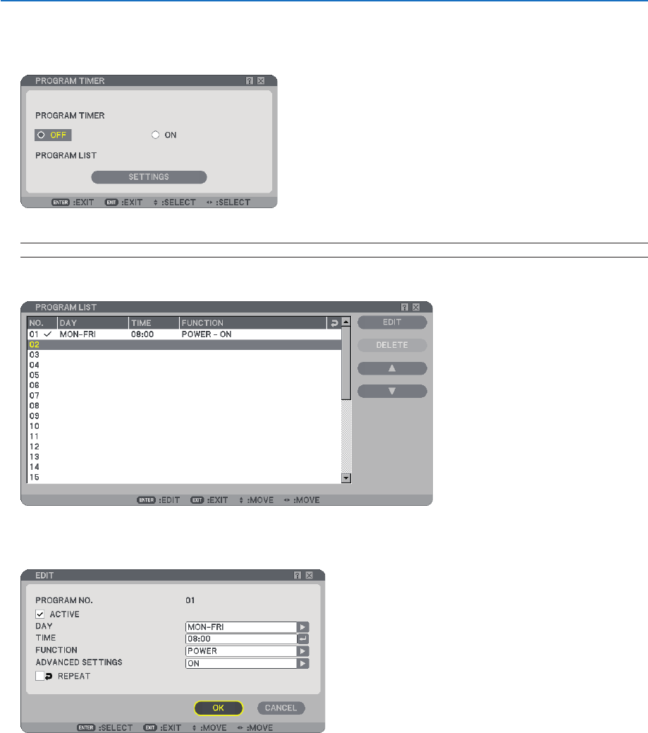 NOTE: When the Program Timer is turned on, the [PROGRAM LIST] cannot be edited.