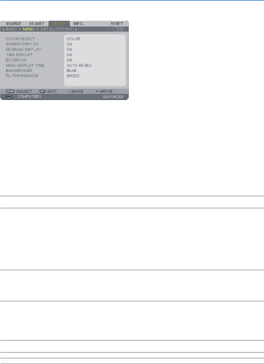 SOURCE DISPLAY ....... This option turns on or off input name display such as Computer 1, Computer 2, Computer 3, Compo-