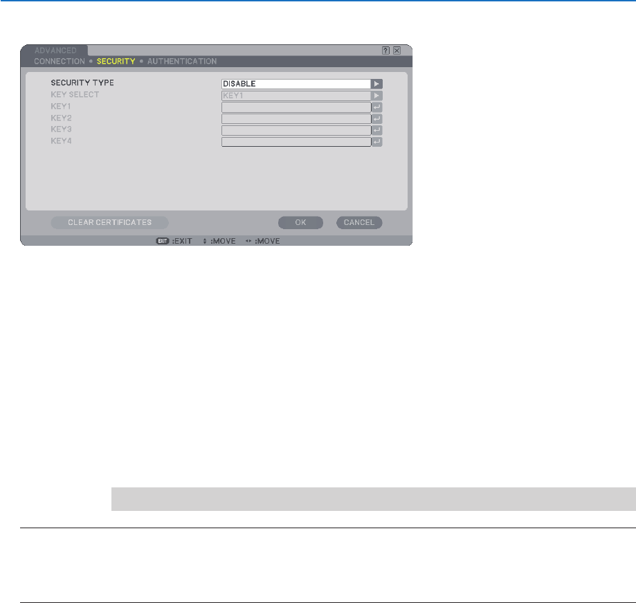 When [WEP] or [DISABLE] is selected in [SECURITY TYPE]: