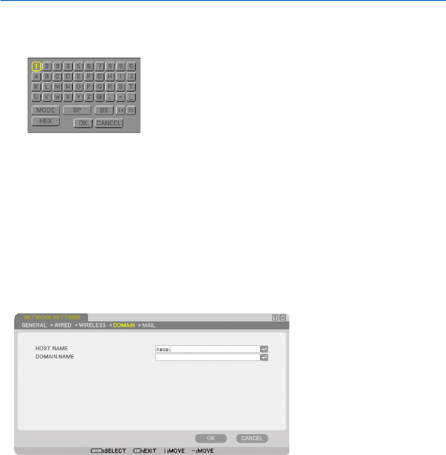 ...... Type in domain name of the network connected to the projector. Up to 60 alphanumeric characters can be