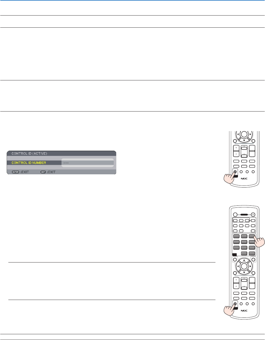 No ID means that all the projectors can be operated together with a single remote control. To set “No