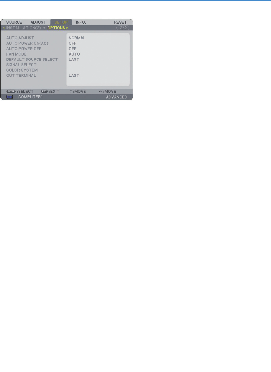lamp to overcool, causing the image to flicker. Switch [FAN MODE] to [AUTO].