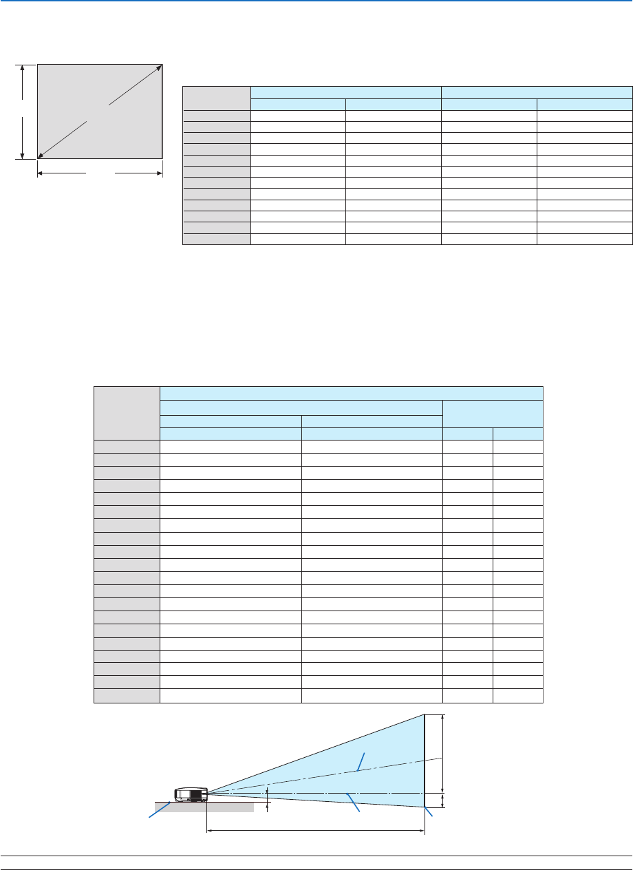 Screen Size and Projection Distance for Desktop when the standard lens is used