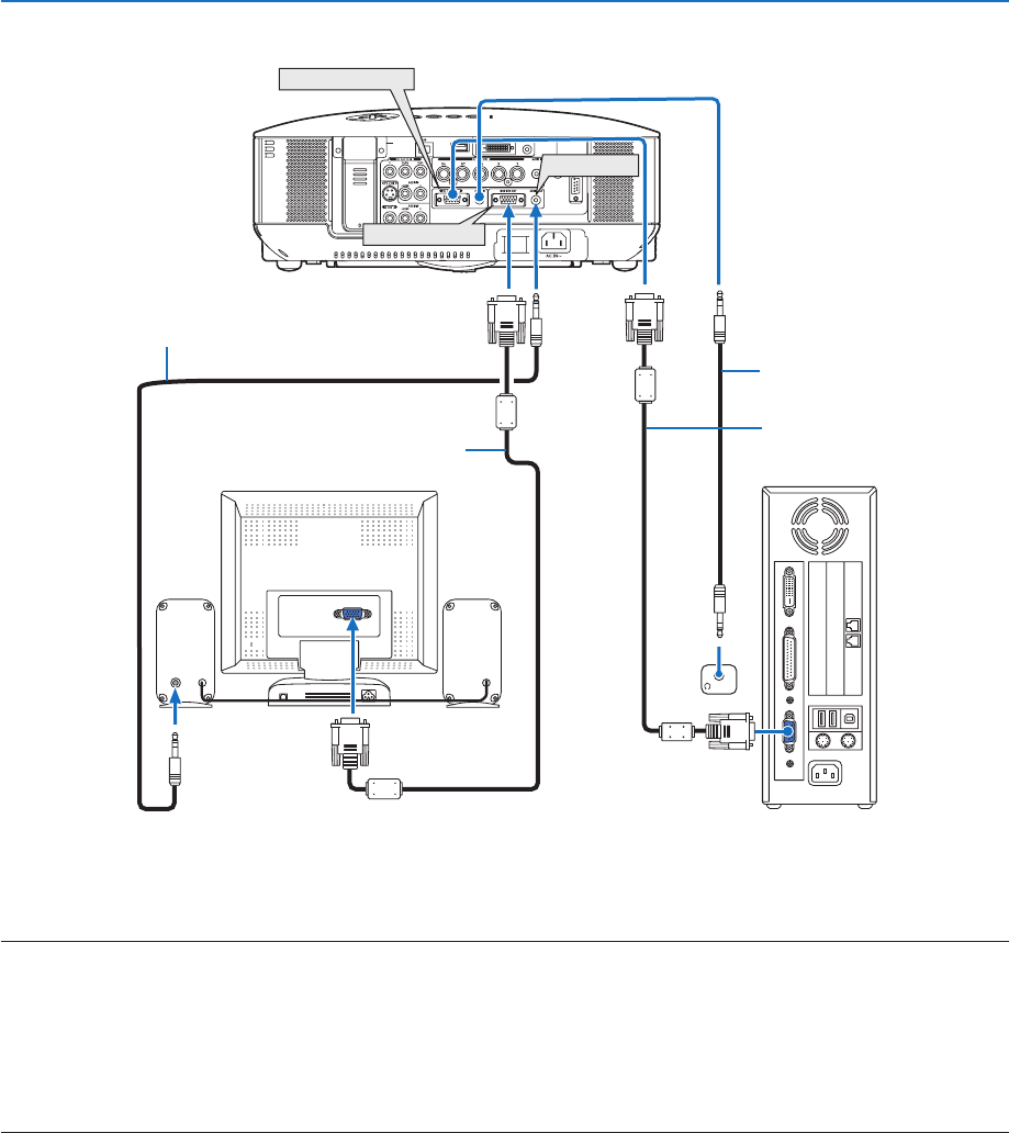 • The MONITOR OUT connector will output no video signal (Digital signal) from the COMPUTER 3 (DVI-D) IN connector.