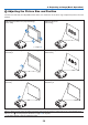 Use the lens shift dials, the adjustable tilt foot levers, the zoom lever or the focus ring to adjust the picture size and