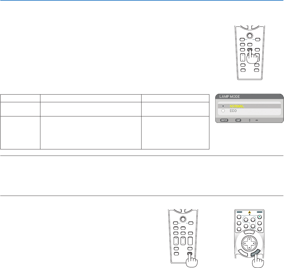 • The projector is always in [NORMAL] for one minute after the lamp is turned on and while the POWER indicator is blinking