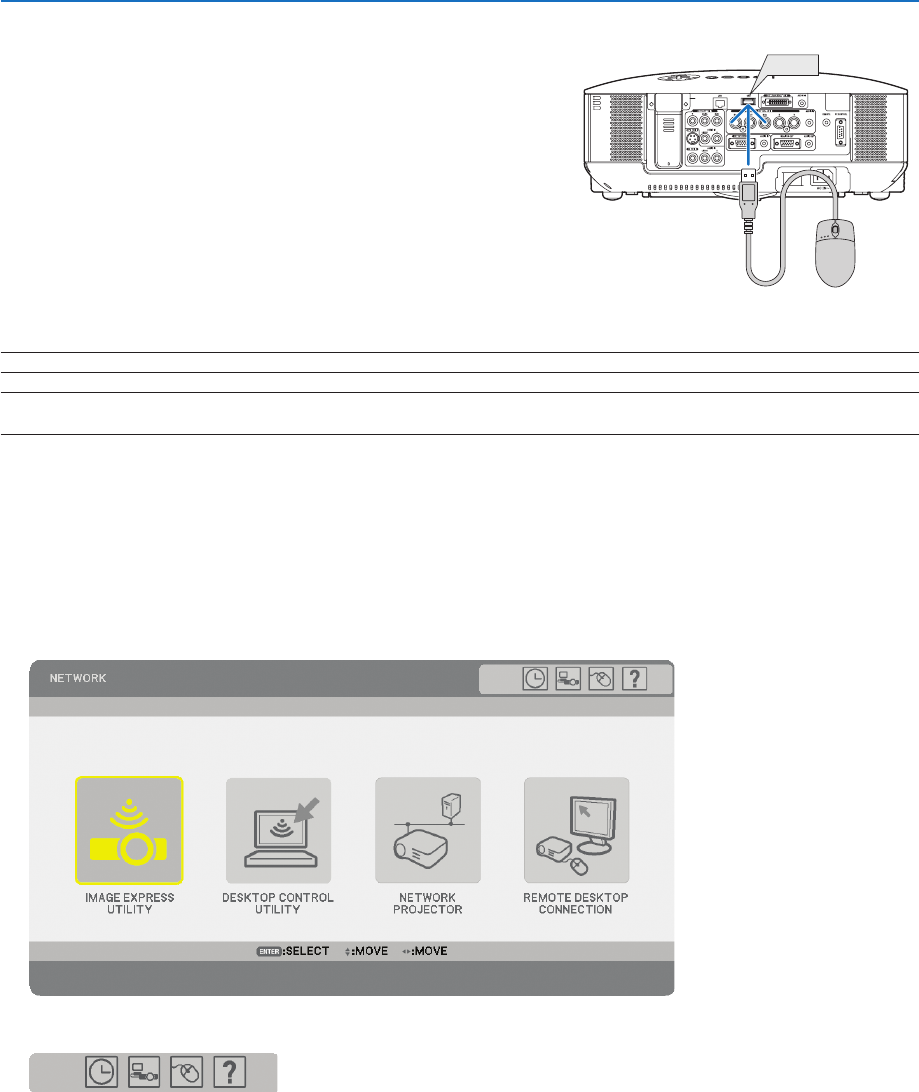 NOTE: Do not try to insert the plug of your USB mouse into the LAN port (LAN) of the projector.