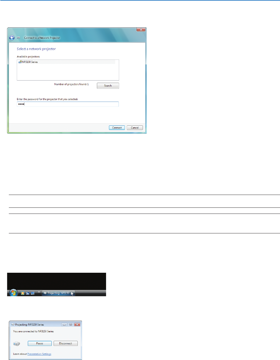 Vista screen and proceed to the step of operating the network projector. Selecting [No] will cancel operating
