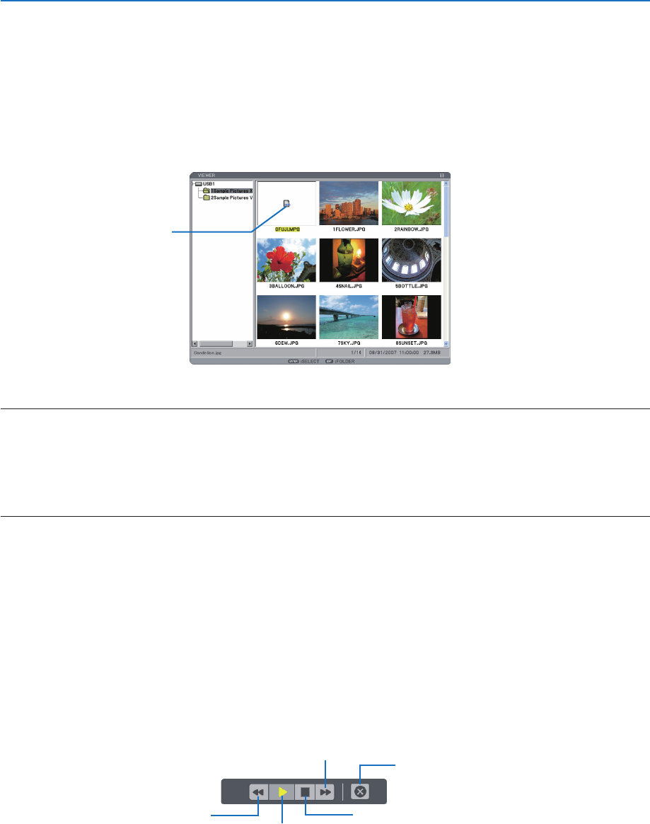 • If you select an unsupported file, a message “This file cannot play back.” will be displayed and the VIEWER will return to the
