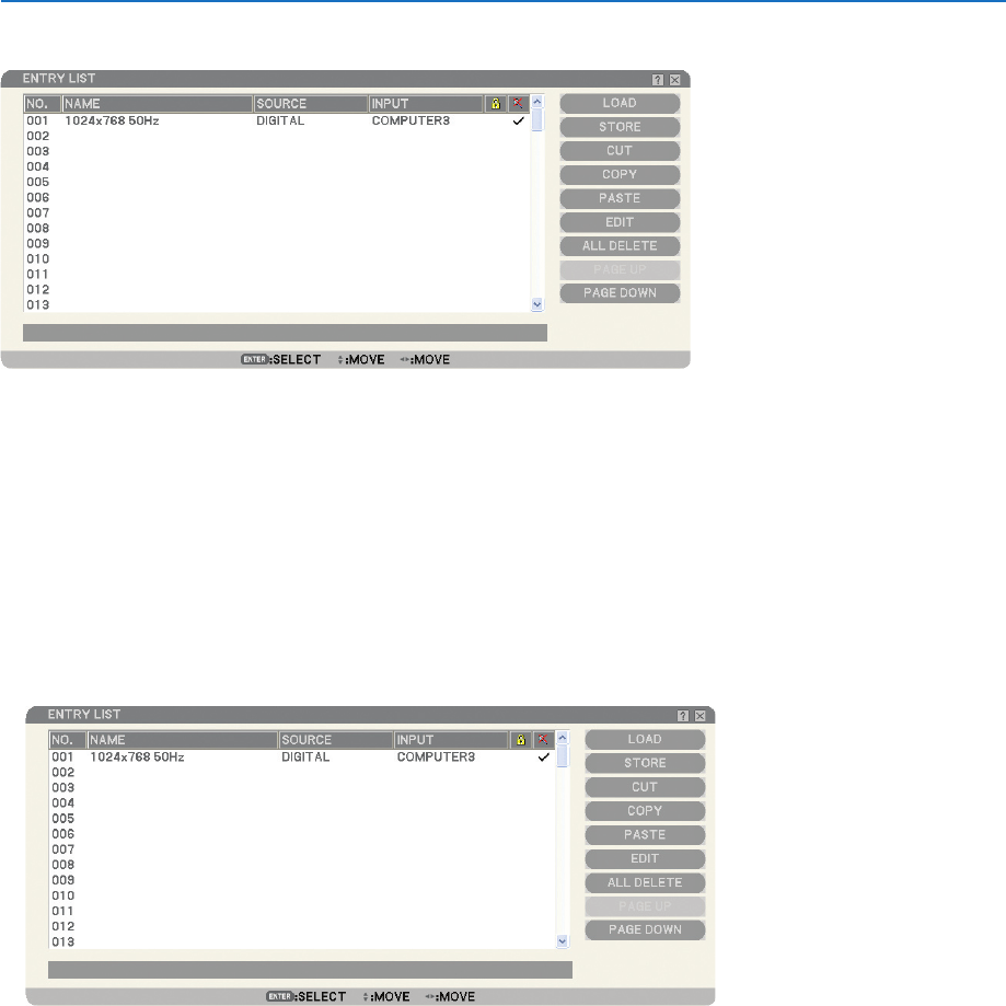 ..................... Enables you to copy a selected signal from the list and place it on the “clipboard” in the projector.