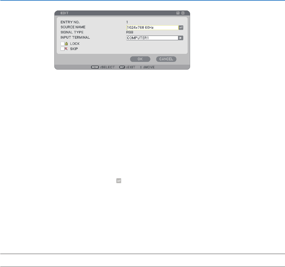 [SOURCE NAME] and press ENTER to display the Source Name Edit window. You can change source