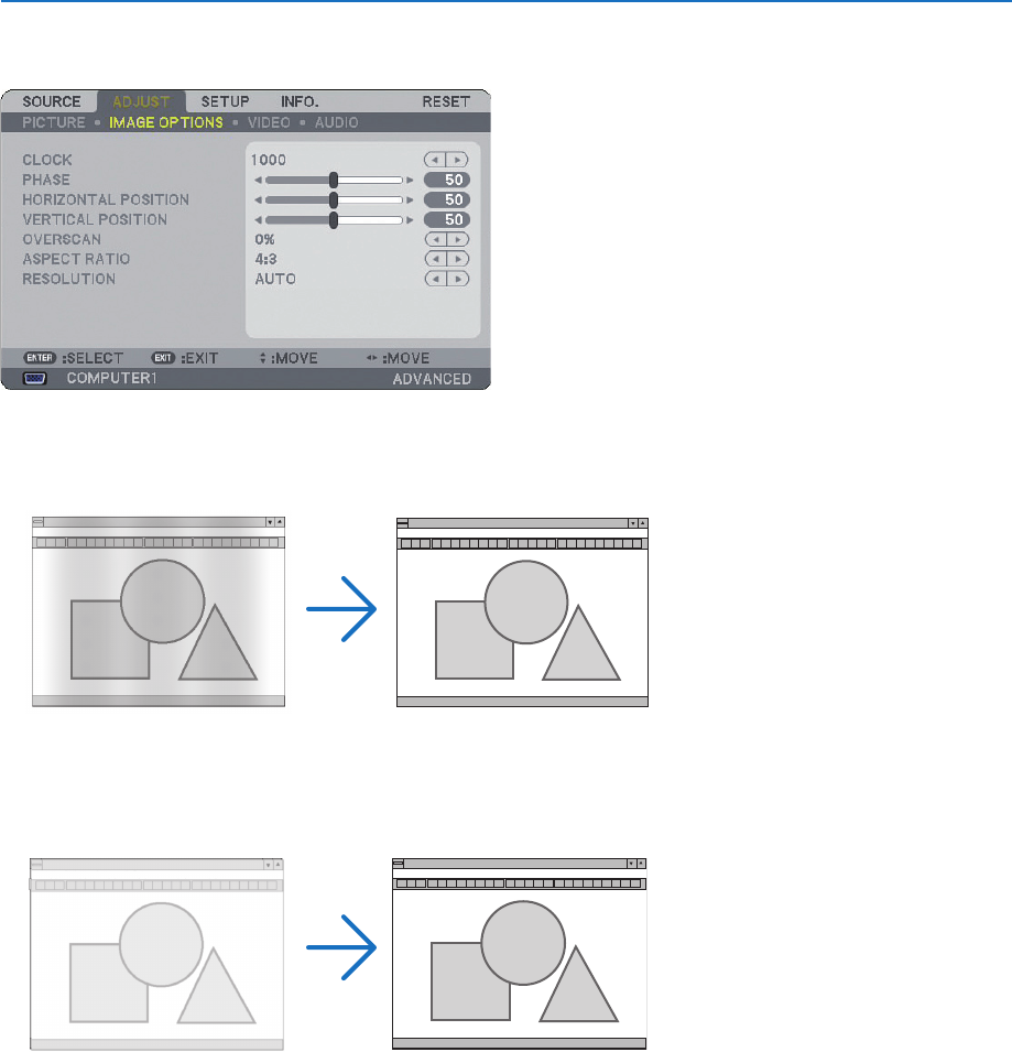 PHASE ................... Use this item to adjust the clock phase or to reduce video noise, dot interference or cross talk. (This is