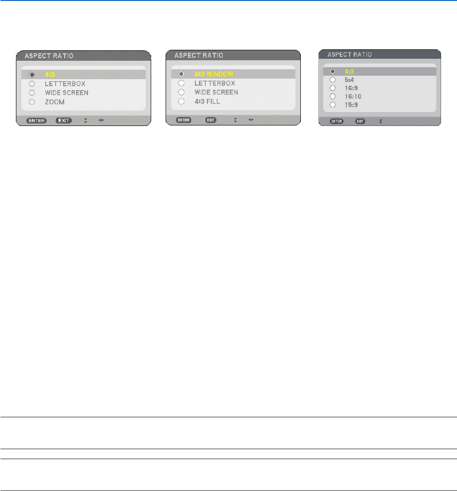 • When [NATIVE] is selected in [RESOLUTION], [ASPECT RATIO] is not available.