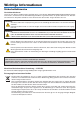 Wichtige Informationen Sicherheitshinweise Vorsichtsmaßnahmen Lesen Sie sich dieses Handbuch bitte sorgfältig durch, bevor Sie den NEC NP62G/NP61G/NP52G/NP41G Projektor benutzen, und bewahren Sie das Bedienungshandbuch in greifbarer Nähe als spätere Referenz auf. Die Seriennummer Ihres Projektors befindet sich auf der Unterseite des Gerätes. Tragen Sie diese hier ein: VORSICHT Zum Ausschalten der Hauptspannung müssen Sie unbedingt den Netzstecker von der Netzsteckdose abziehen.