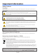 Important Information • • • • • • • • Remote Control Precautions Handle the remote control carefully. If the remote control gets wet, wipe it dry immediately. Avoid excessive heat and humidity. Do not short, heat, or take apart battery. Do not throw battery into fire. If you will not be using the remote control for a long time, remove the battery. Dispose of used battery according to your local regulations. Do not place the battery upside down.