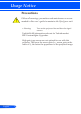 Table of Contents Table of Contents...............................1 Usage Notice......................................2 Precautions..........................................2 Introduction.........................................4 Product Features.................................4 Package Overview...............................5 Product Overview................................6 Projector.................................................. 6 Connection Ports.....................................