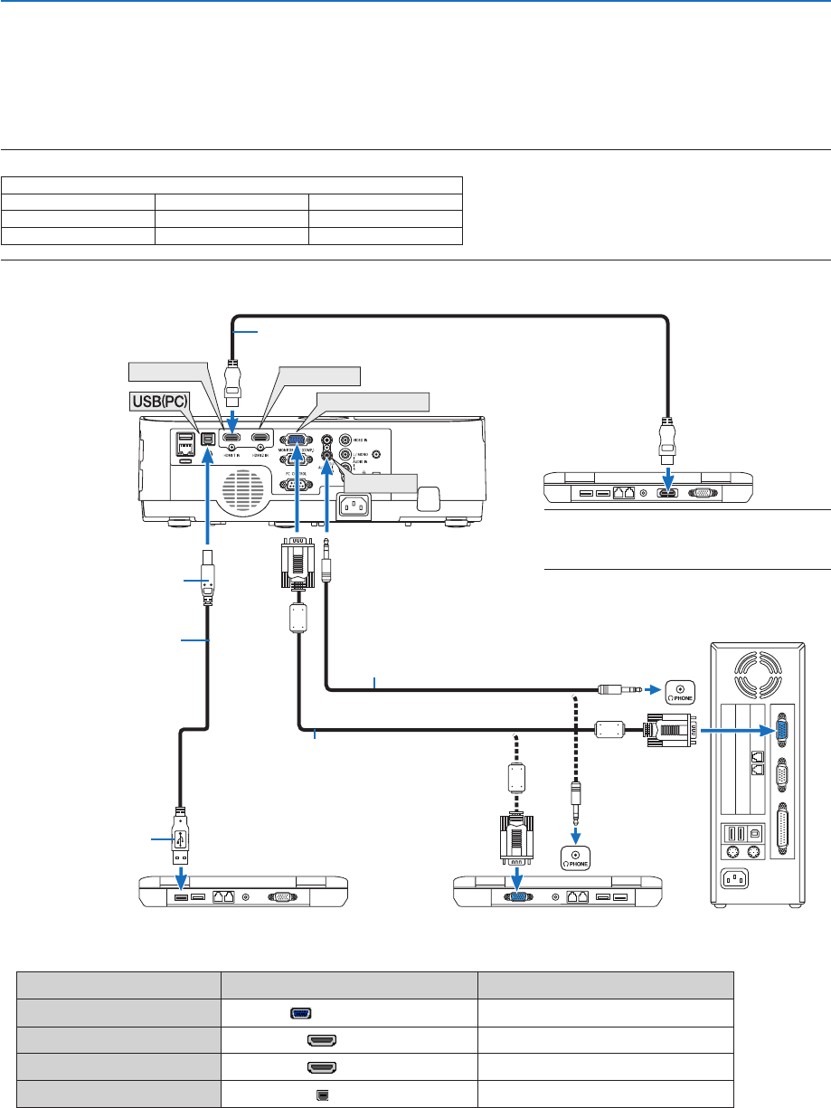 Computercables,HDMIandUSBcanbeusedtoconnecttoacomputer.Theconnectioncableisnotenclosedwith
