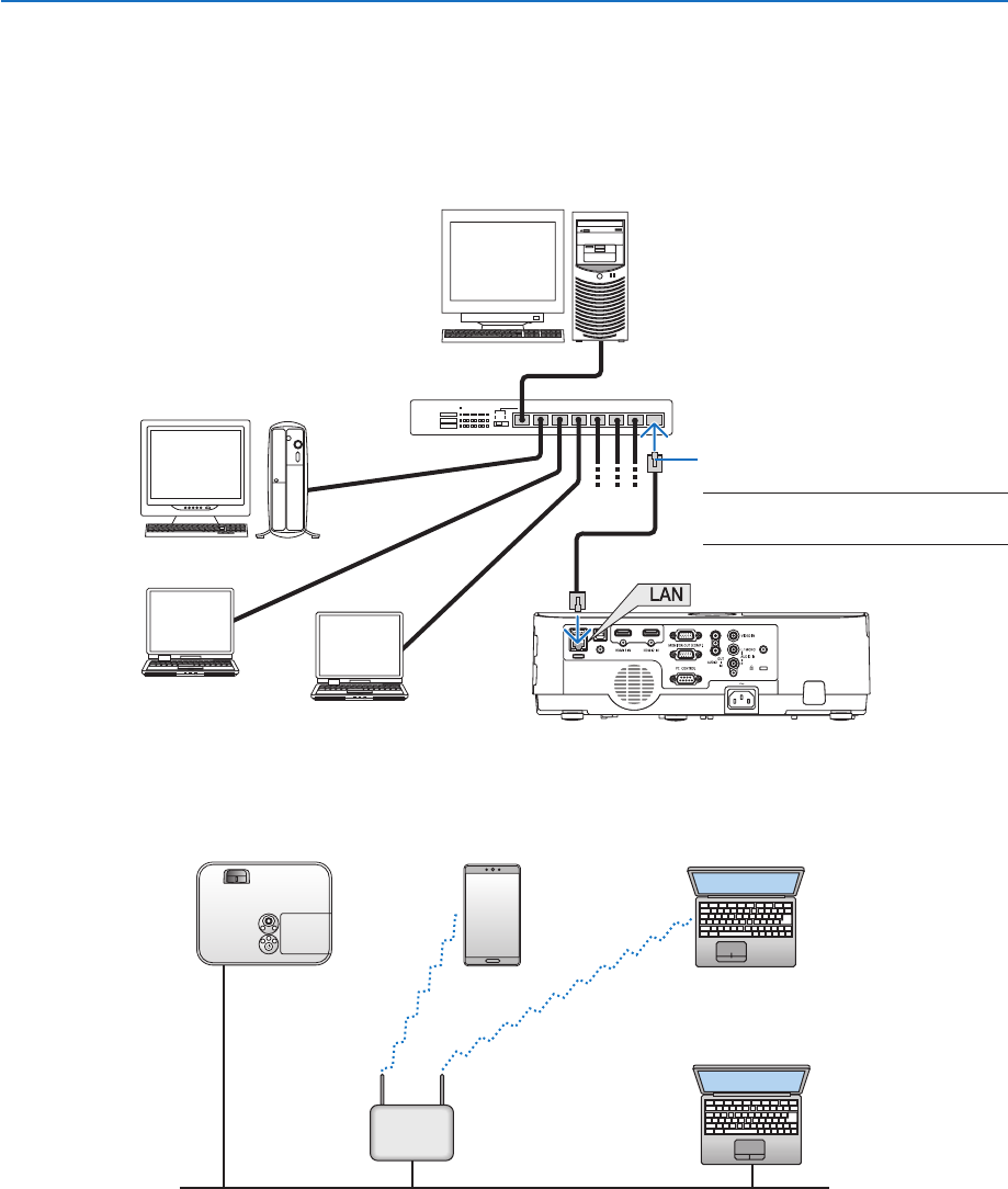 TheprojectorcomesstandardwithaLANport(RJ-45)whichprovidesaLANconnectionusingaLANcable.