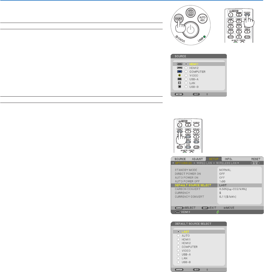 The [DEFAULT SOURCE SELECT] screen will be displayed.