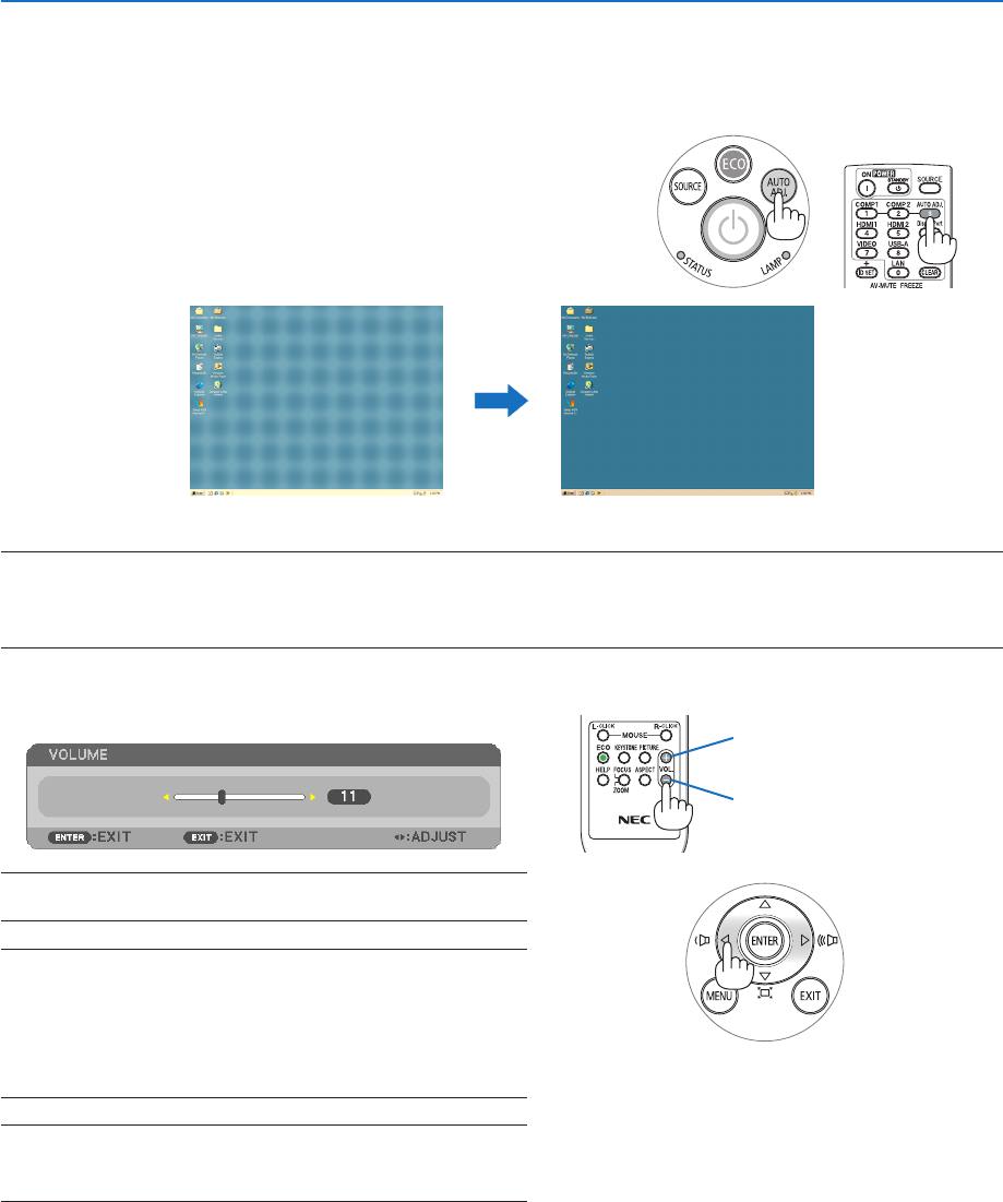 • IftheAutoAdjustoperationcannotoptimizethecomputersignal,trytoadjust[HORIZONTAL],[VERTICAL],[CLOCK],and[PHASE]