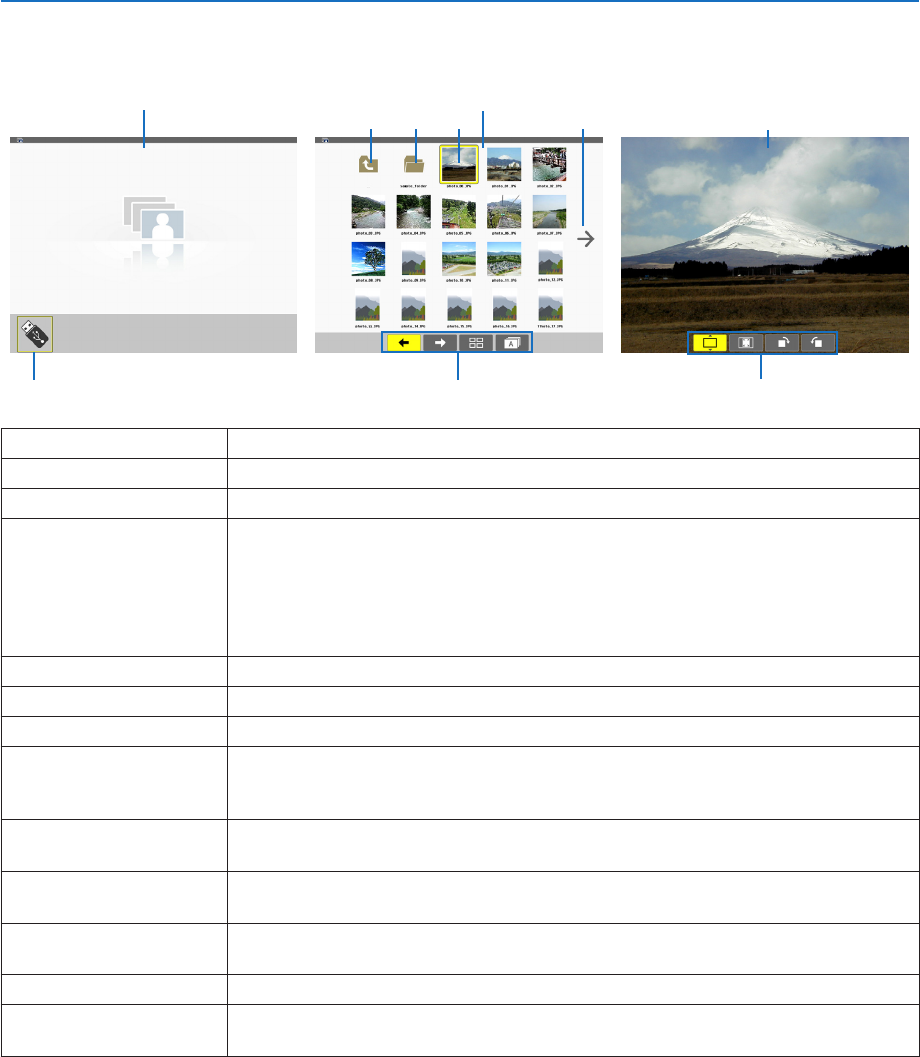 (11)Slideshowscreen Thisscreenisusedforautoplayback.Theslideswillbechangedautomatically.