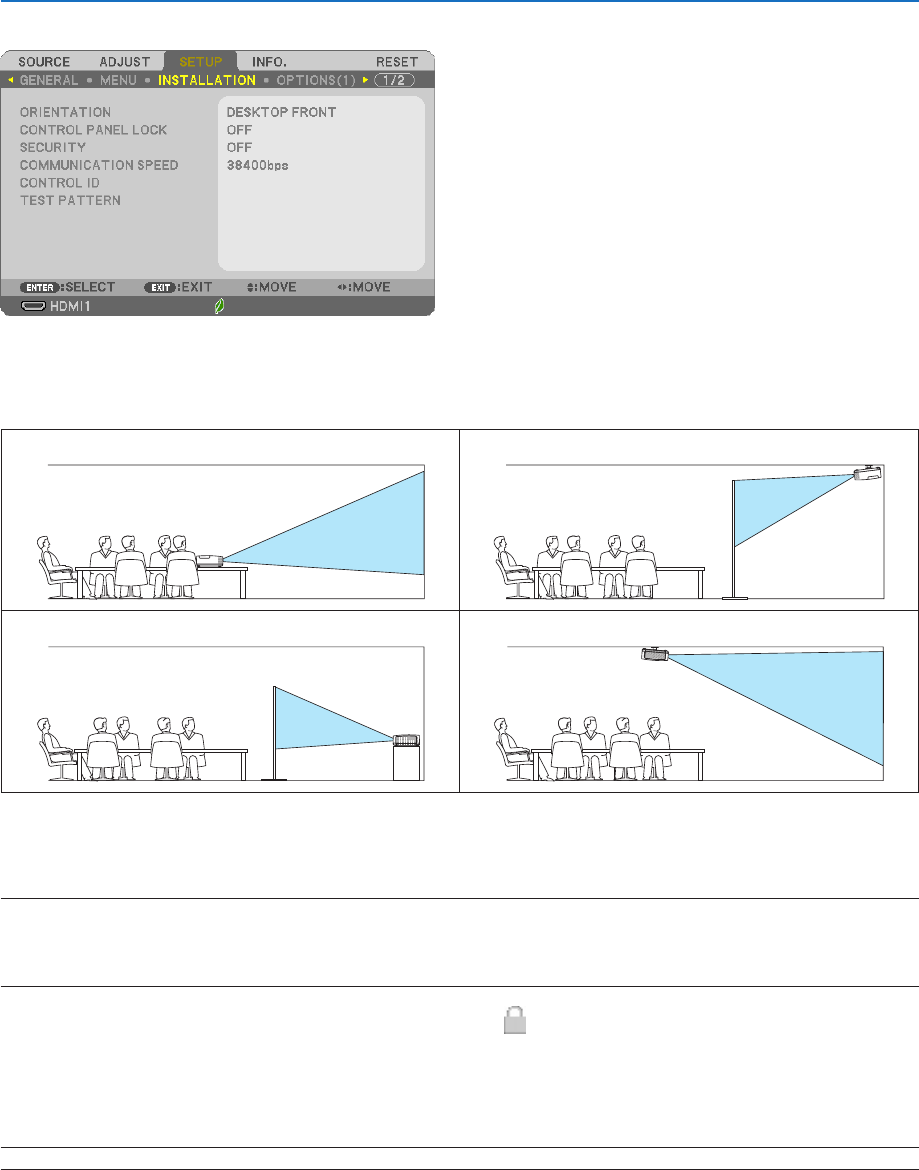 Thisreorientsyourimageforyourtypeofprojection.Theoptionsare:desktopfrontprojection,ceilingrearprojection,