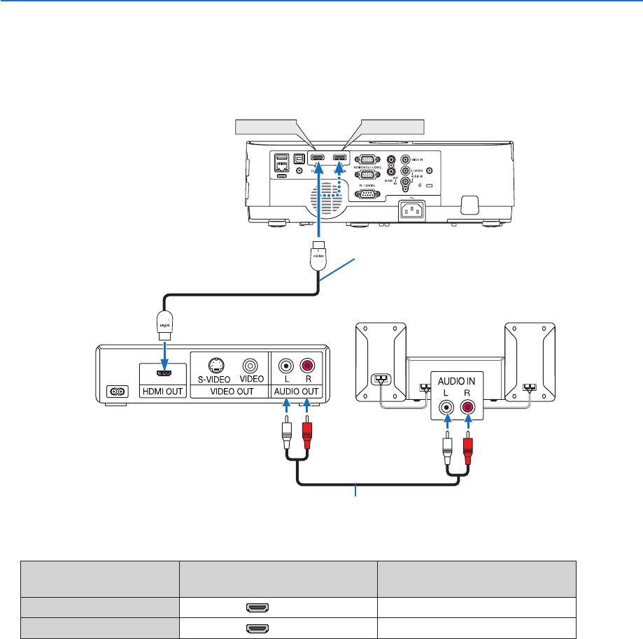 • WhenconnectingtheHDMI1INterminal(orHDMI2terminal)oftheprojectortotheDVDplayer,theprojector’s