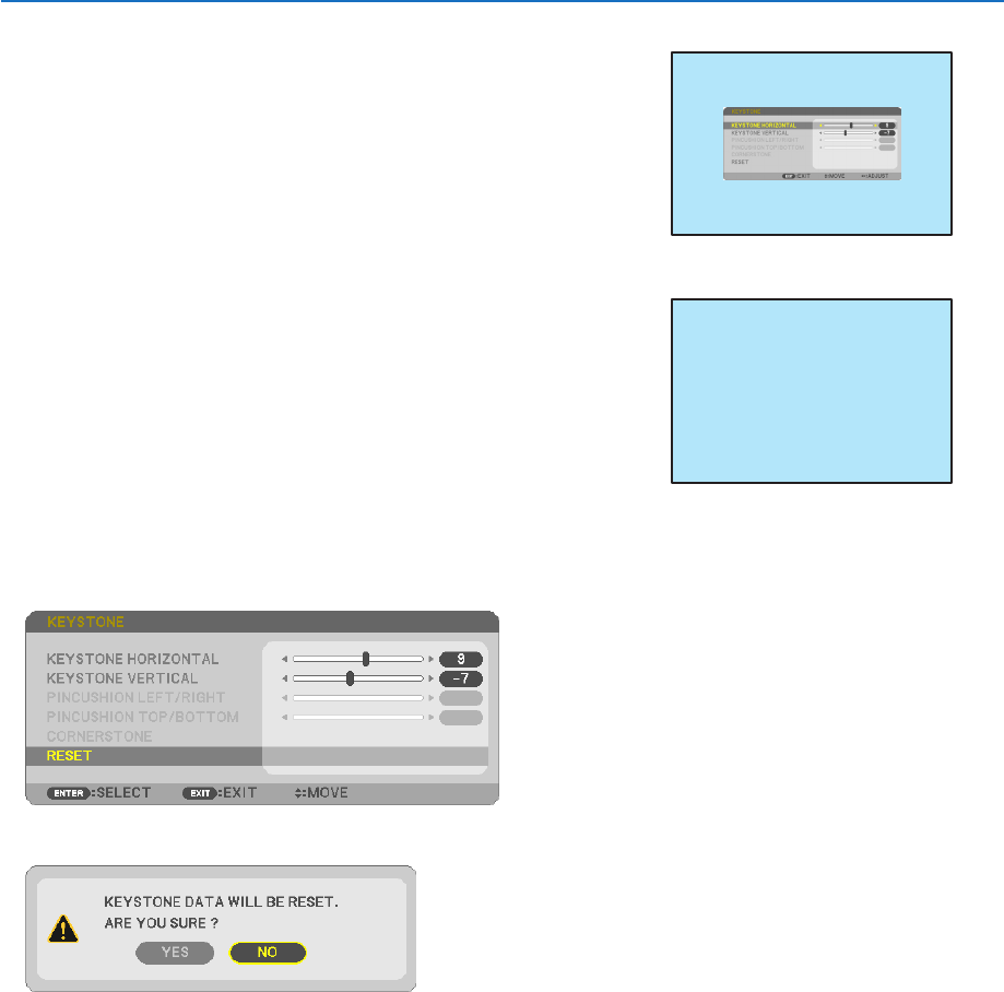 • ToperformKeystonecorrectionagain,pressthe▼ button to display