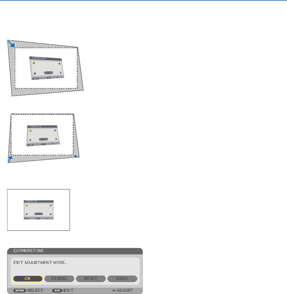 OntheCornerstoneadjustmentscreen,select[EXIT]orpresstheEXITbuttonontheremotecontrol.