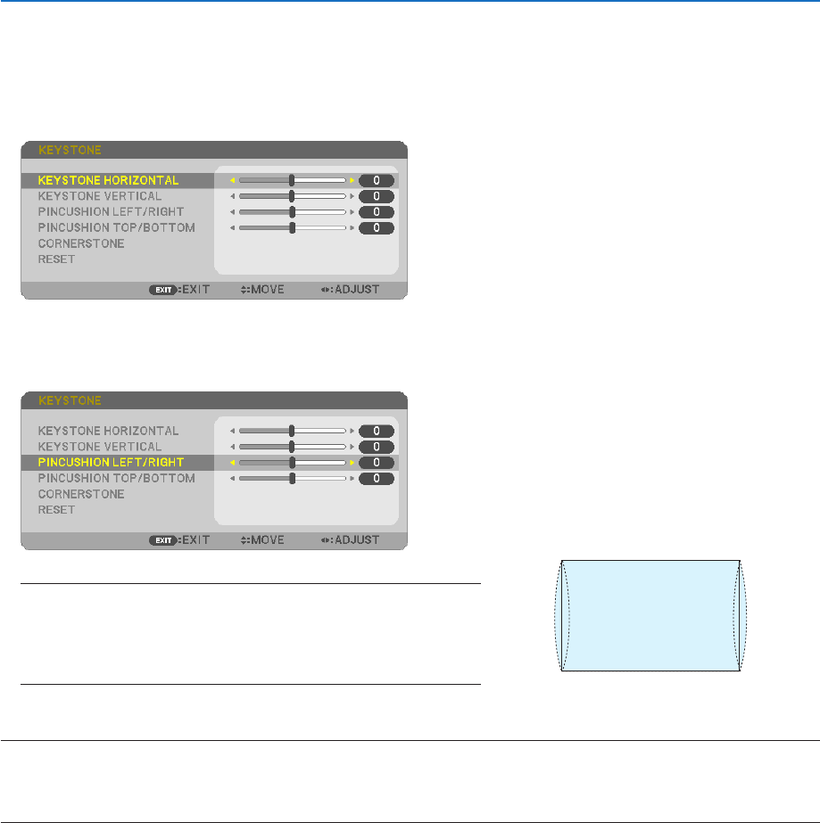 2. Press the or buttontoselect[PINCUSHIONLEFT/RIGHT]