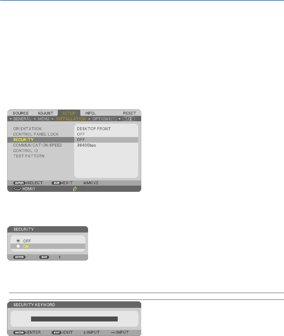 AkeywordcanbesetforyourprojectorusingtheMenutoavoidoperationbyanunauthorizeduser.Whenakeyword