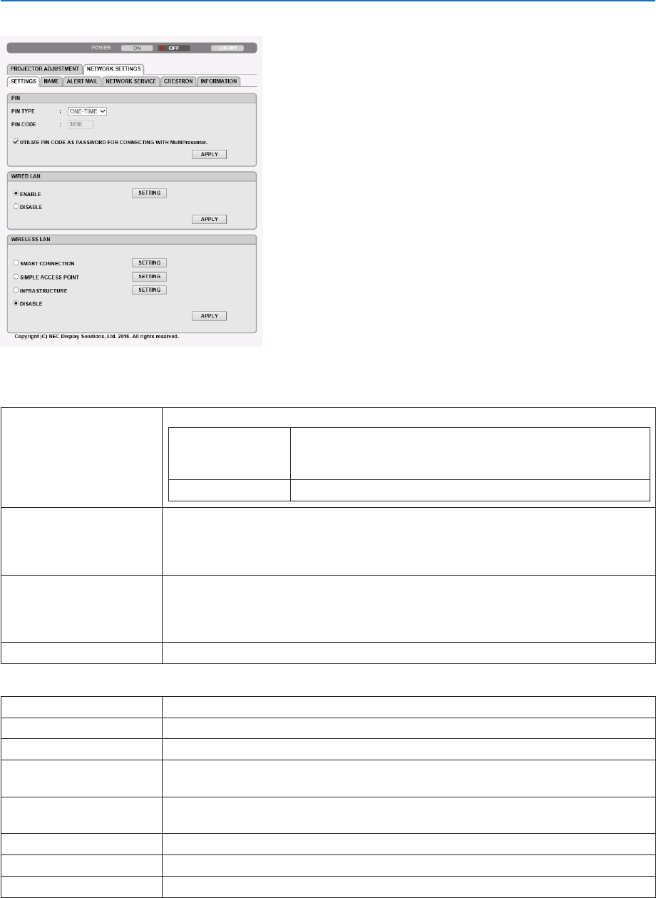 SUBNETMASK SetyourSUBNETMASKnumberofthenetworkconnectedtotheprojector.