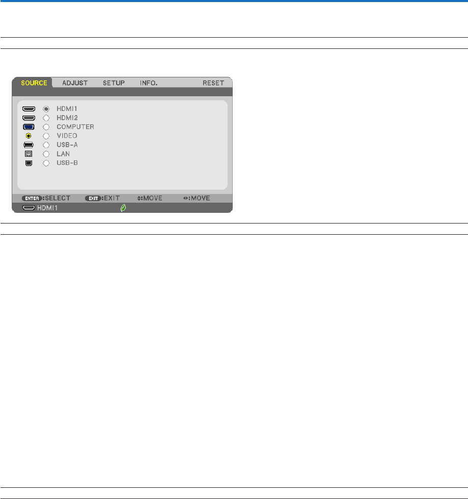 3. Press the ENTER button on the remote control or the projector cabinet to highlight the top item or the rst