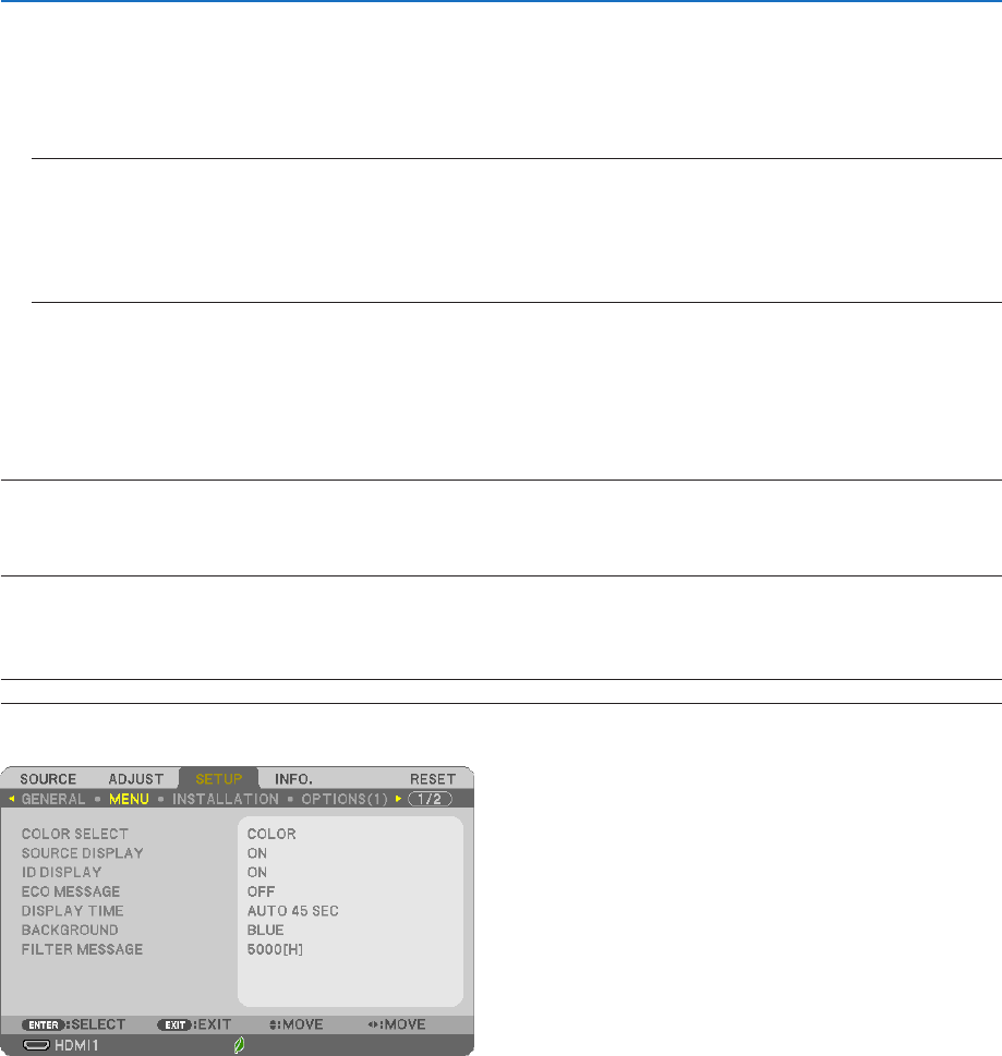 NOTE:Yoursettingwillnotbeaffectedevenwhen[RESET]isdonefromthemenu.