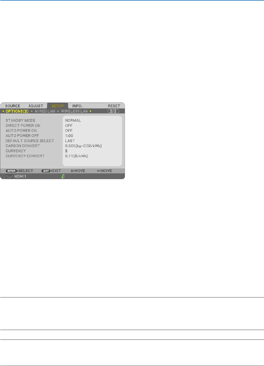 When [NETWORK STANDBY] is selected, the projector can be turned on over a wired LAN connec-