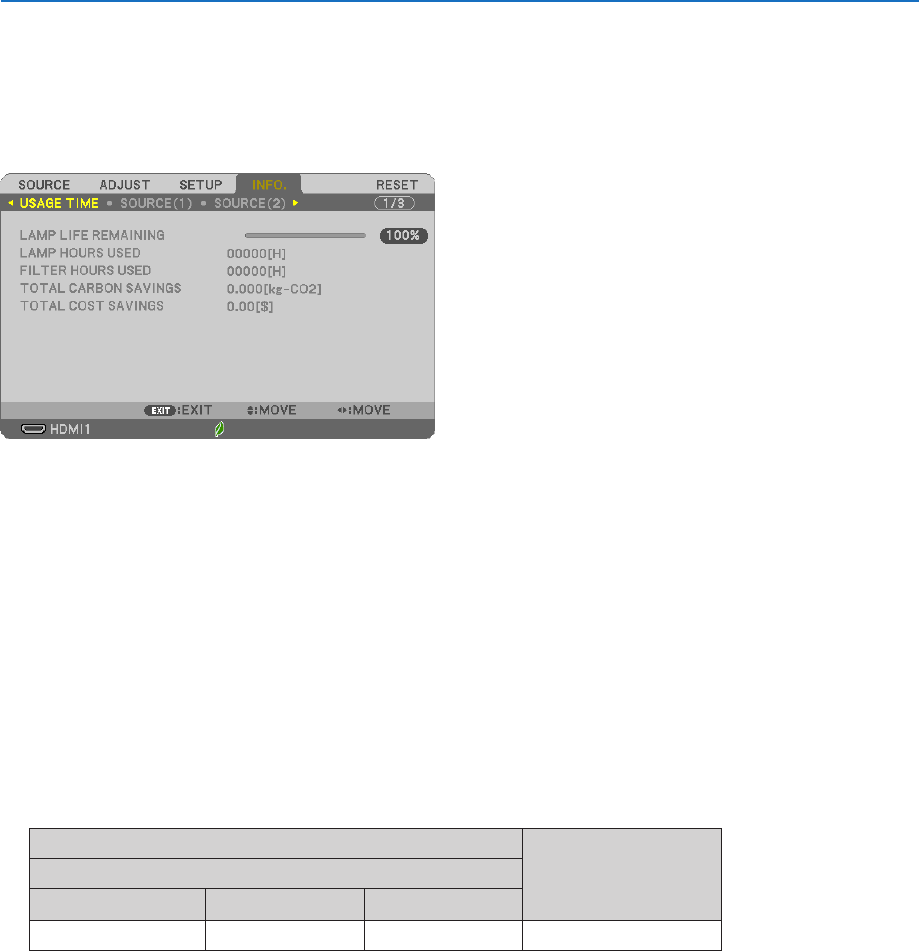Thevalueinformsyouoftheamountoflampusage.Whentheremaininglamptimereaches0,theLAMPLIFE