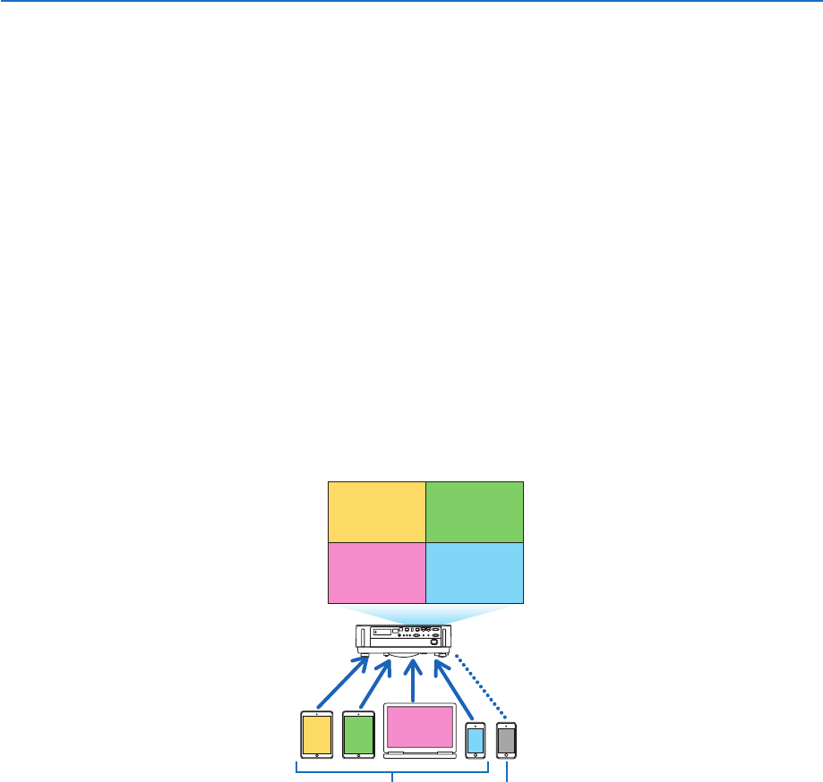 • DerProjektorempfängtübertrageneBildervonverschiedenenAnschlussgeräten(max.50Geräte)undprojiziert
