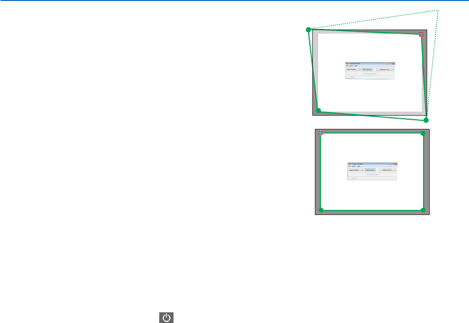 • NachdemSiedie4-Punktkorrekturdurchgeführthaben,könnenSiedieDatender4-PunktkorrekturimProjektorspeichern,indem