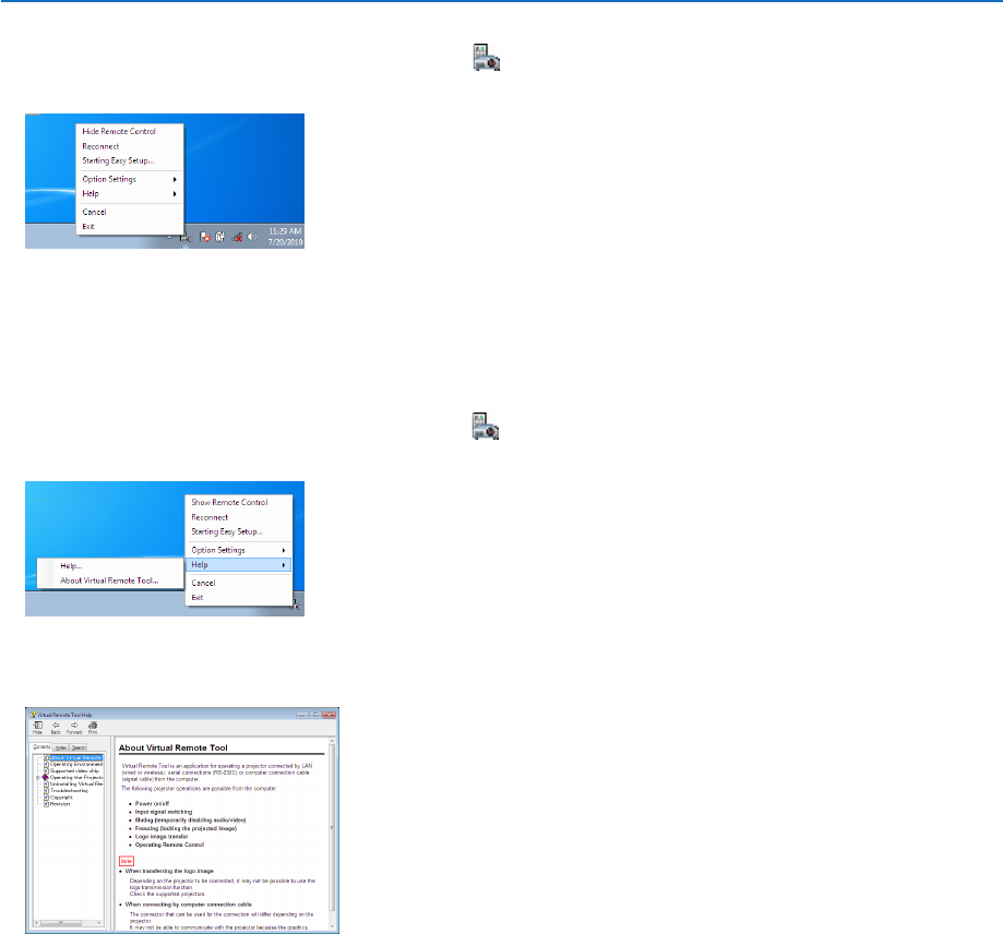 1 Klicken Sie auf das Virtual Remote Tool-Symbol aufderTaskleiste,wenndasVirtualRemoteToolläuft.