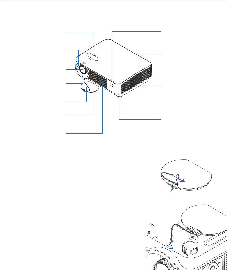 1. Führen Sie die Spitze des Riemens in das Objektivdeckel-Monta-