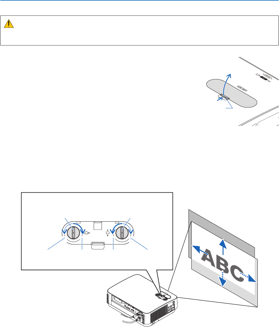 1. Öffnen Sie die Linsenverstellungsabdeckung.