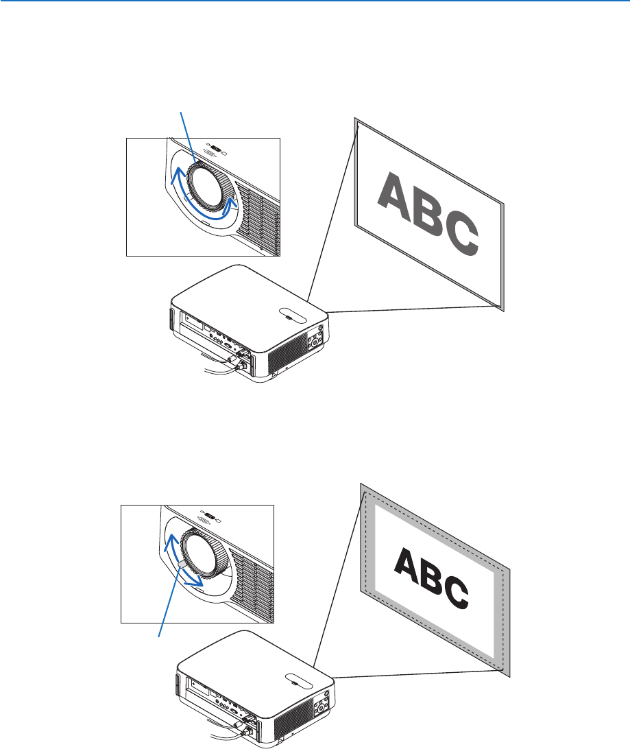 • EmpfehlenSie,dieFokuseinstellungvorzunehmen,nachdemderProjektormehrals30MinutenlangdasTEST-