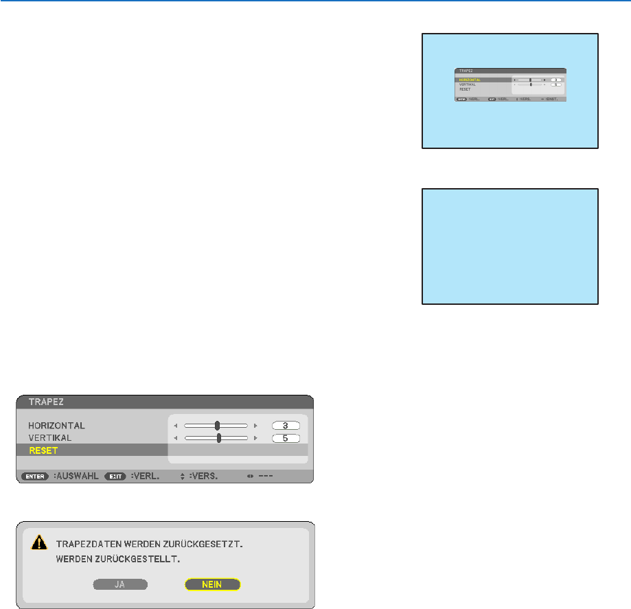 • Um dieTrapezkorrekturerneutdurchzuführen, drücken Sie die