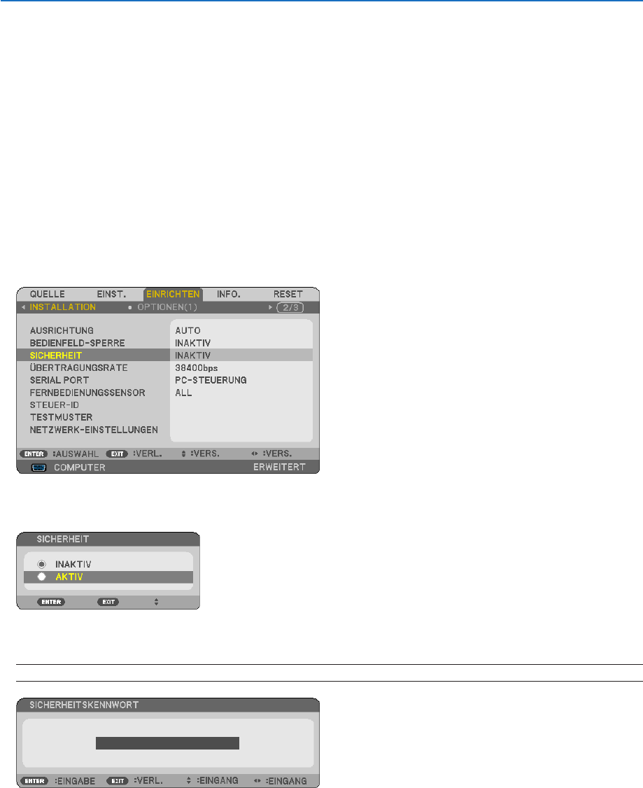 • DieEinstellung[SICHERHEIT]kannnichtüberdas[RESET]imMenügelöschtwerden.