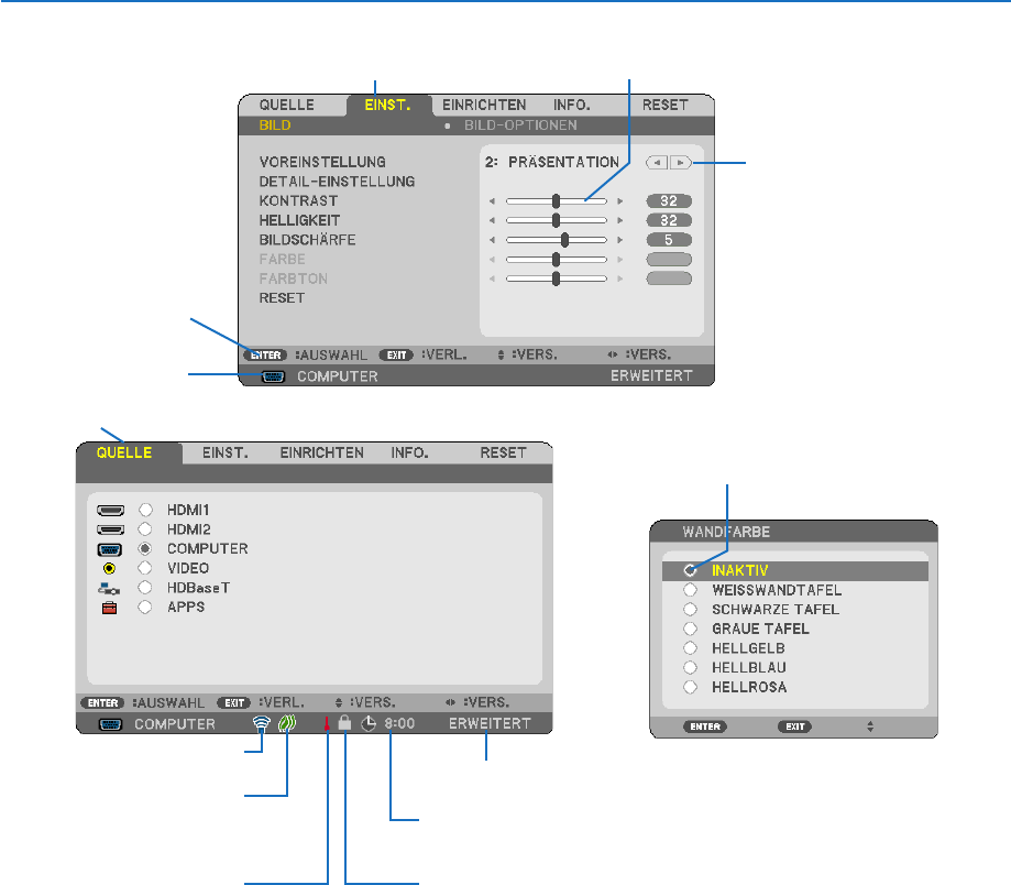 Markieren ����������������������������������������Zeigt das ausgewählte Menü oder die ausgewählte Option an�